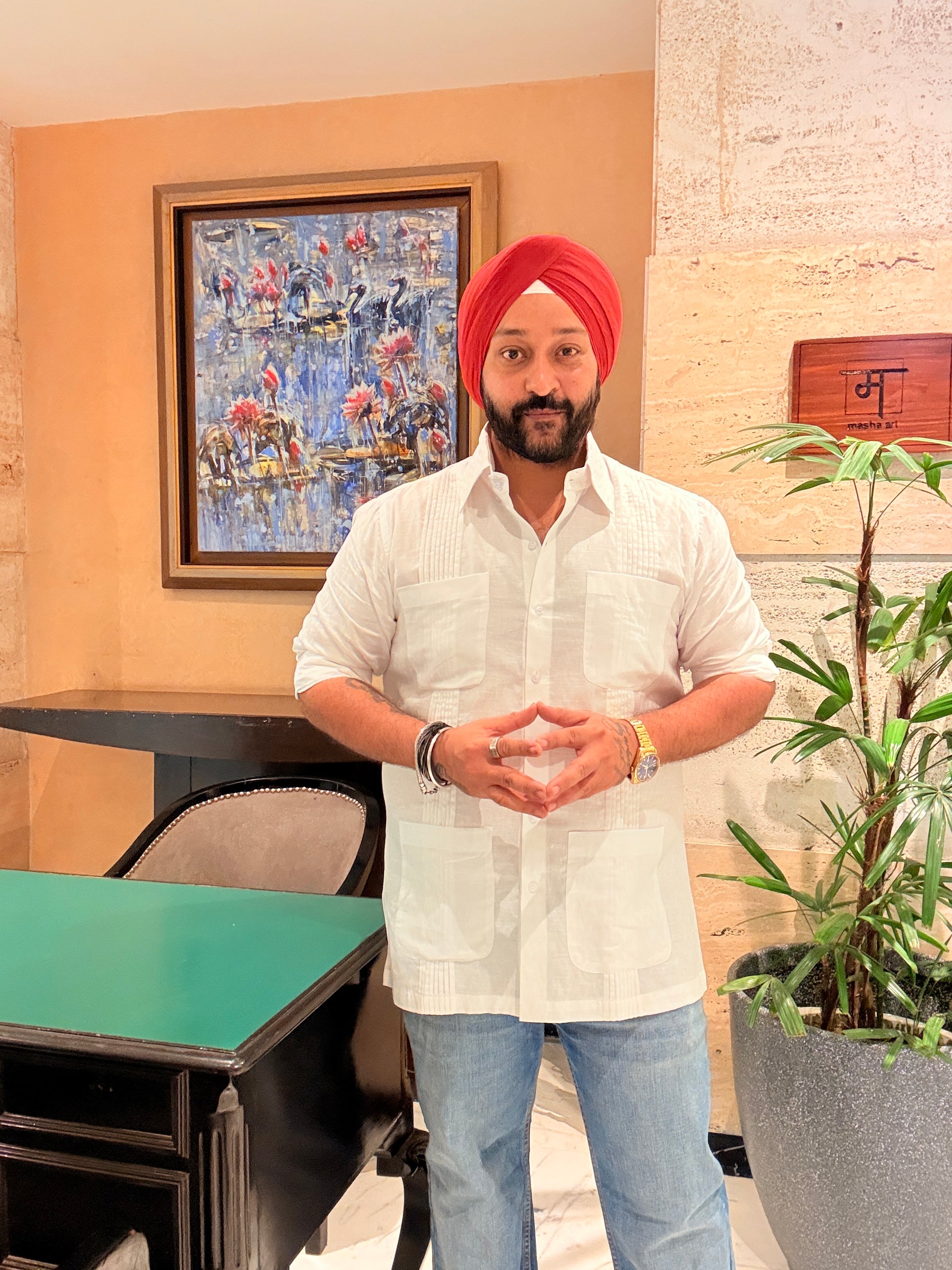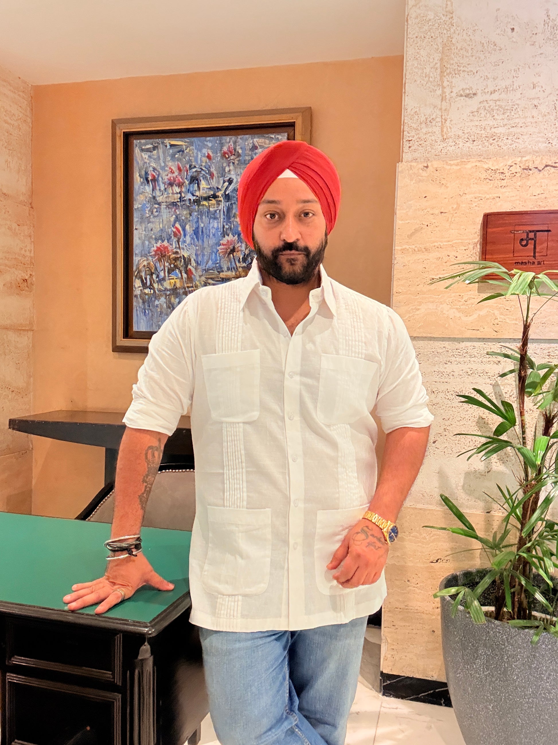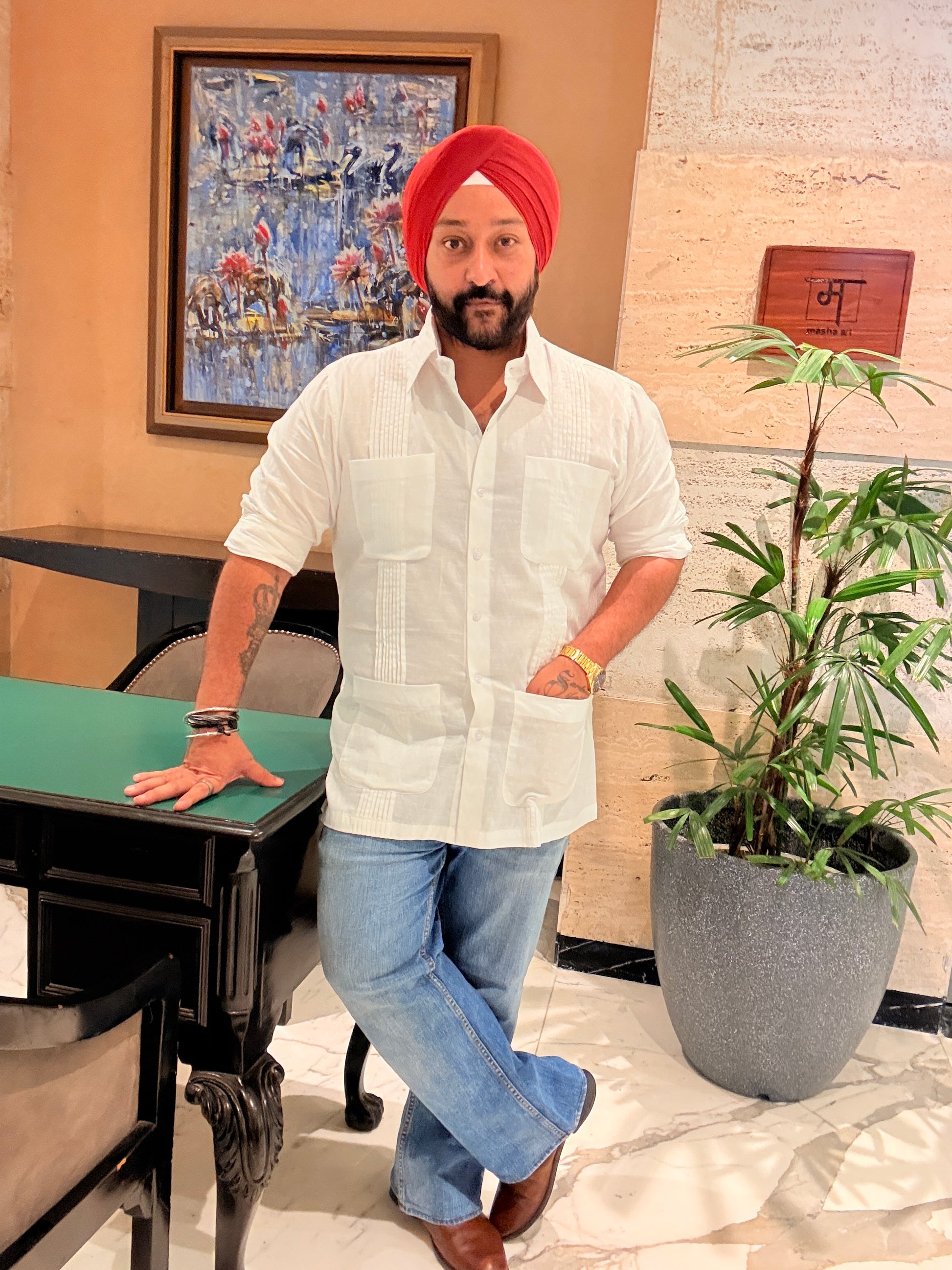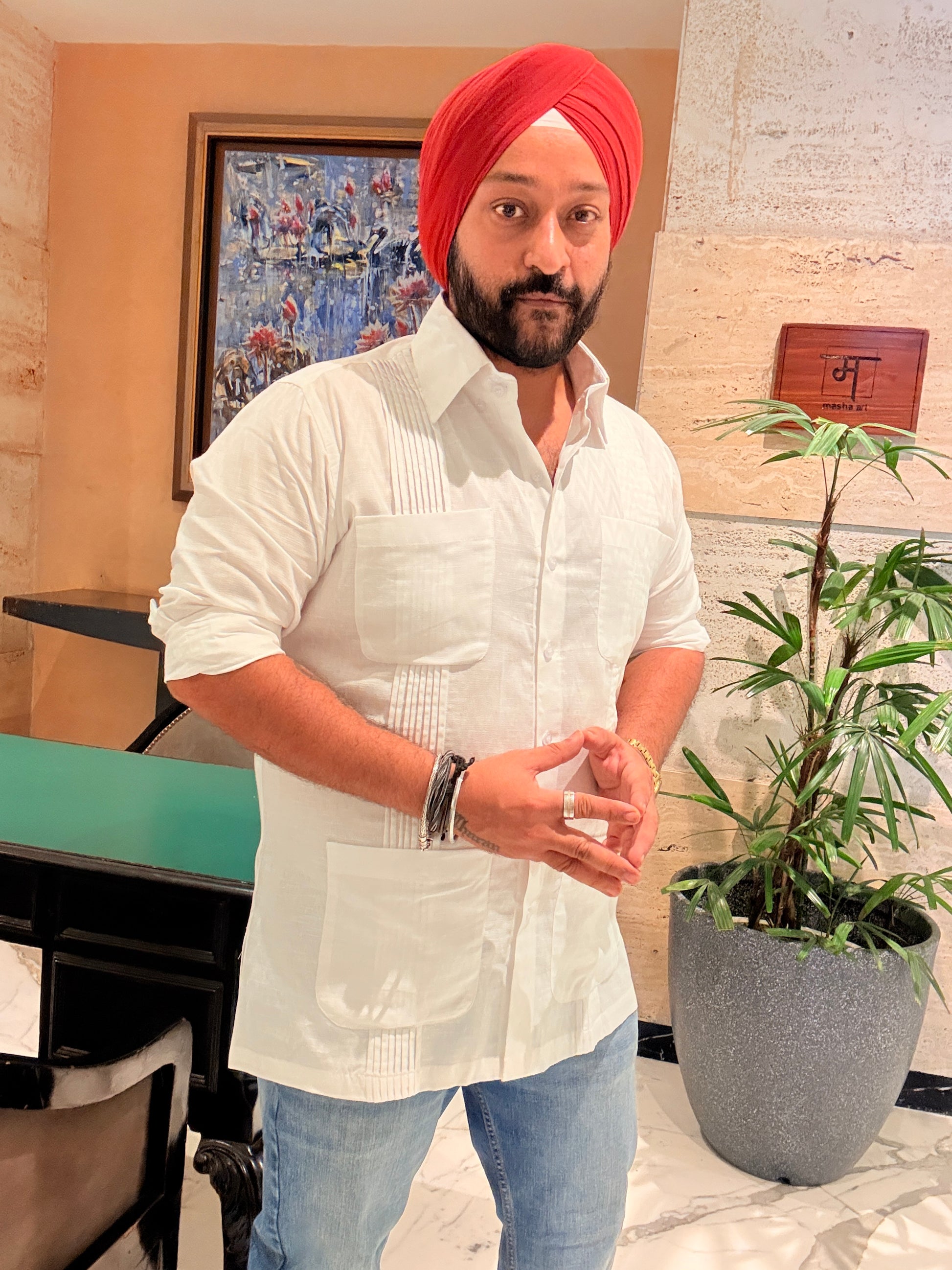 This Safari Shirt is made in white cotton linen fabric.