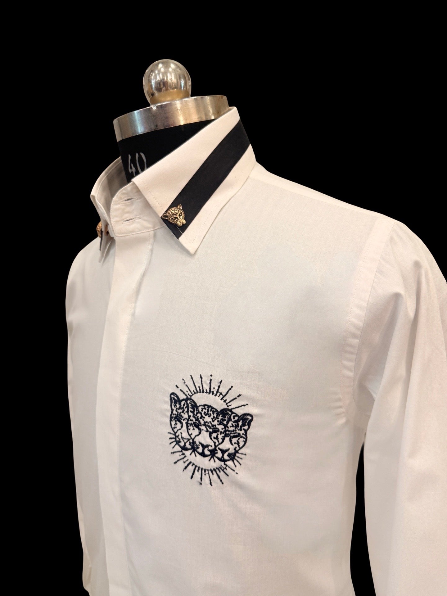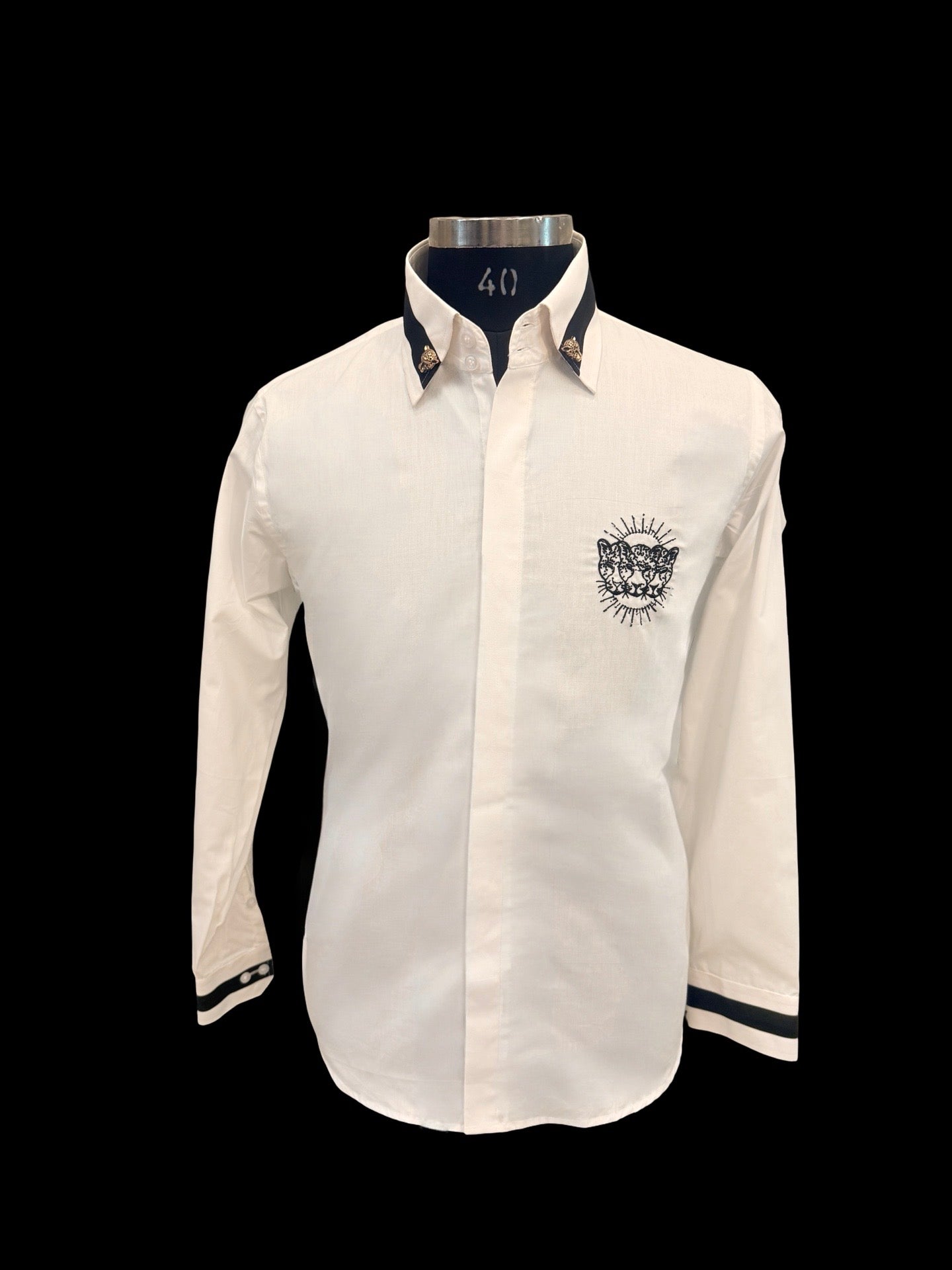 This shirt is made in Premium Giza cotton fabric. It has high collars and side cut cuffs.